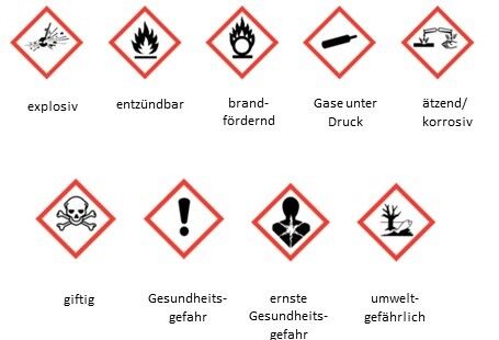 - Beachten Sie vor Gebrauch die Gefahrenbezeichnung (Chemikalienkennzeichnung), Warnaufschriften, Gefahrensymbole bzw. Sicherheitsratschläge und Gebrauchshinweise. Hantieren Sie mit den Chemikalien um- und vorsichtig!